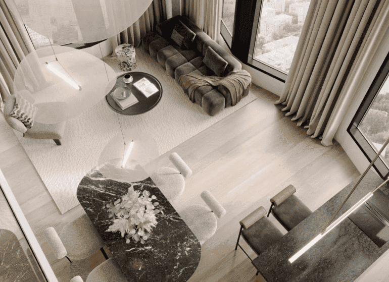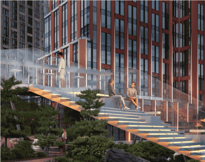 Включает два жилых небоскрёба высотой 41 и 42 этажа